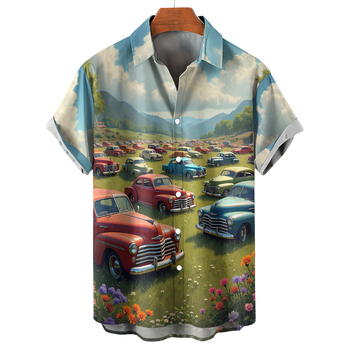 Toptan yaz lüks giyim köpek hayvan baskılı nefes erkek havai gömleği kısa kollu Streetwear gevşek bluz Tops