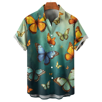 Hot Bán Mùa Hè Phong Cách Cộng Với Kích Thước Người Đàn Ông Của Bướm In Hawaii Áo Sơ Mi Biểu Tượng Tùy Chỉnh Thiết Kế Ngắn Tay Áo Lỏng Áo Sơ Mi Bãi Biển